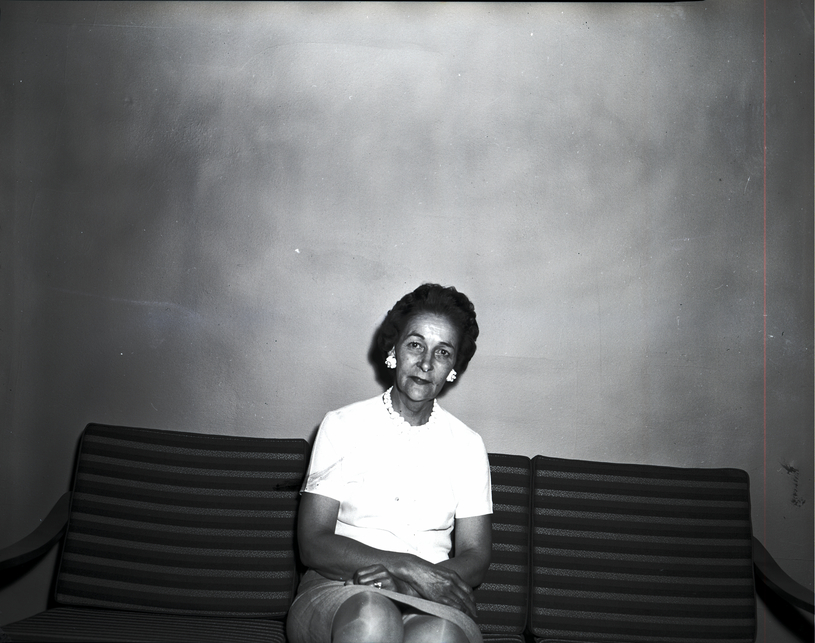 Zenobia Club, organized under Iris Temple No. 40, Daughters of the Nile, sits on a couch. She is wearing a blouse and skirt. - Date