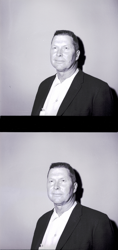 Ned. D. Millard, district forest ranger on the Twin Falls Ranger District of the Sawtooth National Forest, retires from the U. S. Forest Service. He is dressed in a jacket and a white button-up shirt.