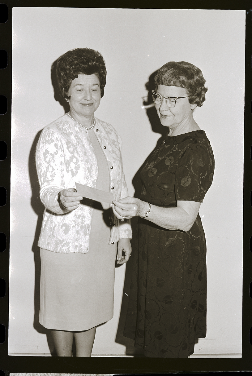 Presenting a $150 check for the Sun Valley Music Camp to Mrs. Donald Youtz, scholarship