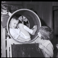 - Several children, including one of the Hill twins, play on a tunnel at Children's Village, a Montessorian method pre-school in Twin Falls run by Mrs. Charles Hopkins.
