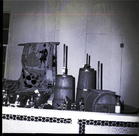KEL 373 Some old butter churns, pots, dishes, candelabra, and embroidered blanket are on display at the Twin Falls County Fair.