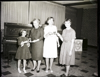 KEL 070 Mrs. Donald Youtz presents pianist Margaret Van Orman with a trophy at a Junior Music Club Gold